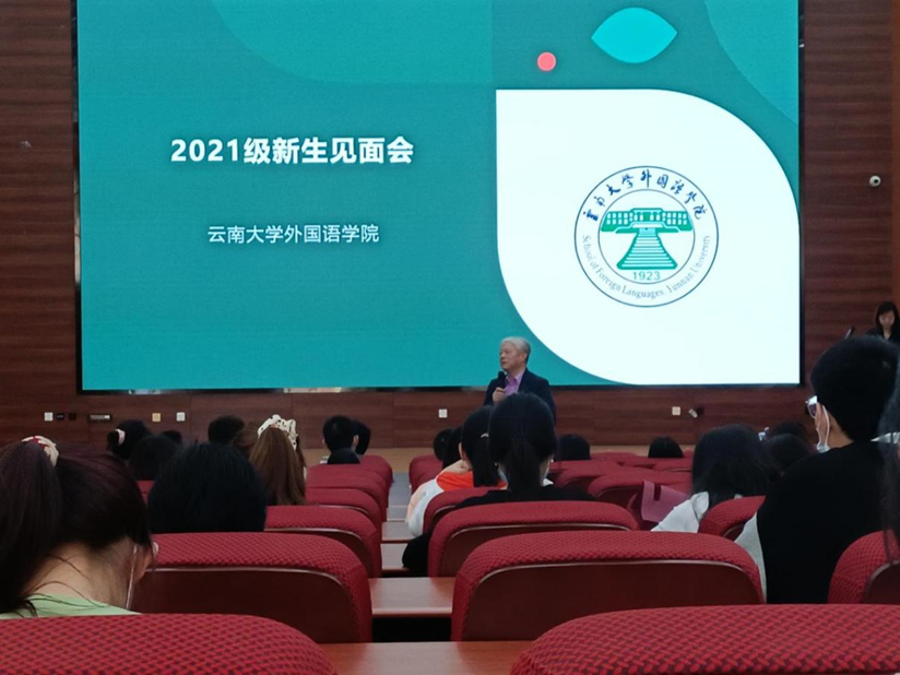 9月17日下午,云南大学外国语学院2021级新生见面会在呈贡校区外国语学院报告厅举行。外国语学院党委书记王益广和外国语学院院长刘树森出席,并全体新生党员上党课。