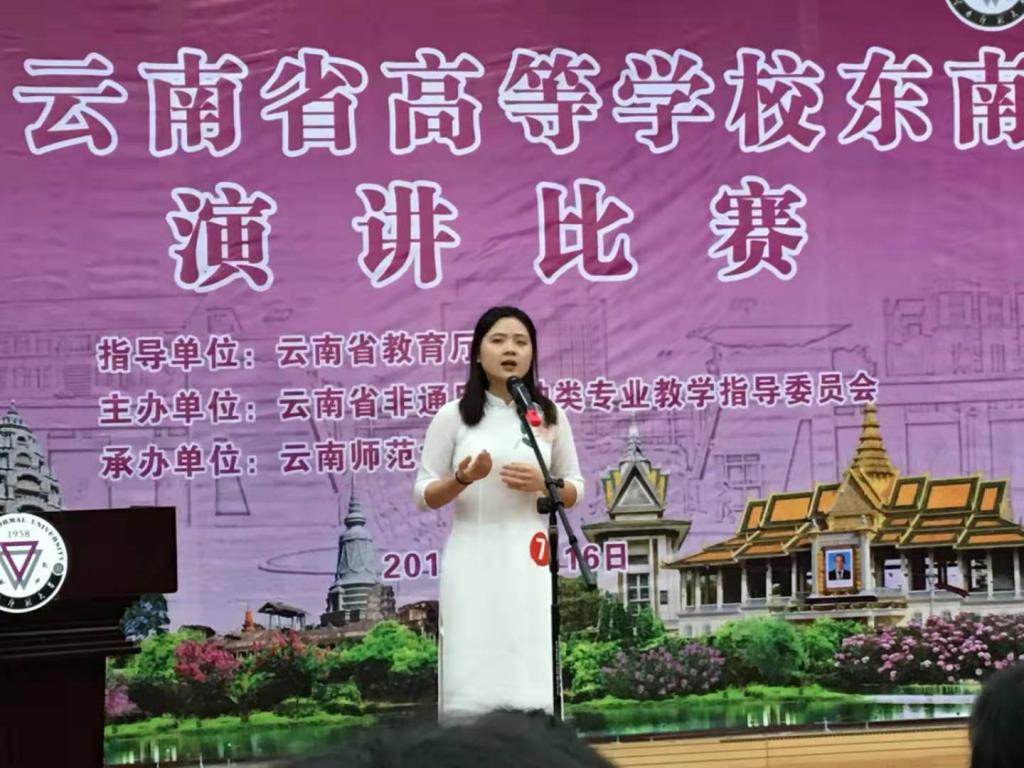 继今年9月底在“第九届全国大学生越南语演讲比赛”中获得优异成绩之后。11月16日,越南语系学生再创佳绩,在由云南省非通用语种类专业教学指导委员会主办、云南师范大学承办的“第七届云南省高等学校东南亚语演讲比赛”上获得高年级组第一名、低年级组第二名。