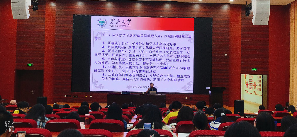 讲座伊始,李副校长对新生同学来到乐动网页版_乐动(中国)表示热烈的欢迎,同时希望通过发自内心的沟通和交流,引导新生正确认识自己的专业、学校、社会、国家与世界,找到自己的人生定位。李副校长说,“解决同学们的疑惑,思想引领非常重要,早沟通比晚沟通好”。以此为初衷,李副校从自身长期从事缅甸研究的经历出发,从国家与云南省建设的需要、学校发展的需要、个人成长的需要等多方面进行讲述,选取云南大学非通用语建设中的典型案例,鼓励新生树立专业自信。