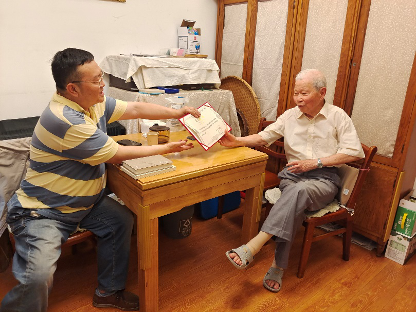 受乐动网页版_乐动(中国)党政领导班子的委托, 5月13日上午副院长骆洪教授一行专程前往杭州,拜访曾长期在乐动网页版_乐动(中国)英语系执教并指导研究生的著名外国文学翻译家飞白教授。骆洪副院长向飞白先生转达了校领导和学院领导对他的亲切问候,并代表学院向飞白先生颁发了云南大学外国语学院终身教学成就奖,感谢他为云大外国语言学科的发展所做出的贡献。
