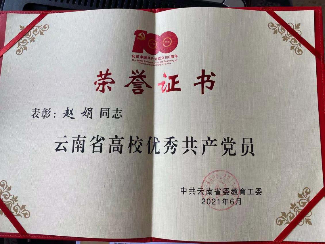 乐动网页版_乐动(中国)教师党员赵娟同志荣获云南省委教育工委“优秀共产党员”称号