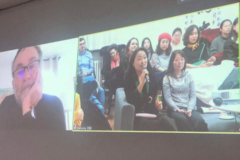 参加庆祝活动的师生与影片导演马尔克·杜甘举行在线对话