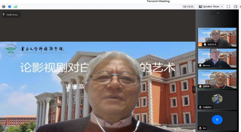 讲座伊始,主持人刘衍博士对麻争旗教授表示衷心感谢和热烈欢迎,并对麻教授的学术研究和成果进行了介绍。在讲座中,麻教授首先介绍了影视剧及其对白根本属性和特征。他指出,戏剧影视文学的本质是视听文学,影视剧翻译时“说”的艺术,在翻译时要注意三点,即符合话语品性、传达语言功能、优化表现方式,译制传统便是“让外国人的嘴说中国人的话”,实现功能对等,译文追求自然、生动、有趣。