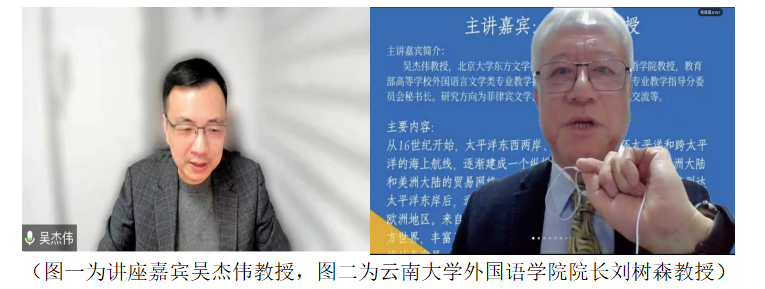 2022年11月2日晚,北京大学东方文学研究中心、北京大学外国语学院教授,教育部高等学校外国语言文学类专业教学指导委员会非通用语种类专业教学指导分委员会秘书长吴杰伟老师通过线上方式,为乐动网页版_乐动(中国)师生开展讲座。本次讲座主题为“数字人文视野下的太平洋丝绸之路:文本、档案与图像”,系云南大学百年校庆外国语言文学文化系列讲座之一,也是东南亚语言文化系系列学术讲座第五场。本次讲座由东南亚语言文化系系主任李芳博士主持,乐动网页版_乐动(中国)院长刘树森教授对讲座主题进行了多维度解读。参与讲座的嘉宾包括乐动网页版_乐动(中国)各专业师生以及其他高校师生近300人。