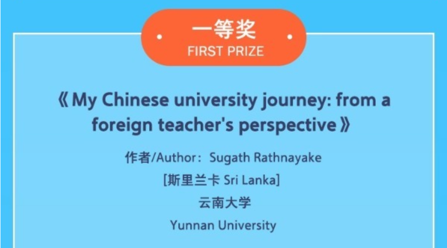 近日,乐动网页版_乐动(中国)僧伽罗语外教苏嘎特先生在《中国日报》社主办的“我的校园故事”主题征文活动中荣获一等奖。该活动主要邀请外国留学生讲述在华留学经历、所见所感所悟、心路历程和美好记忆,旨在展示真实、立体、全面的中国,从而推动新时代国际青年人文交流。活动收到了来自115个国家共计1474份作品。苏嘎特先生以在云大工作、生活的经历为基础,写就《我的中国大学之旅——一名外籍教师的视角》(“My Chinese university journey: from a foreign teacher’s perspective”)一文。该文从1000多份参赛文章中脱颖而出,荣获一等奖第一名。