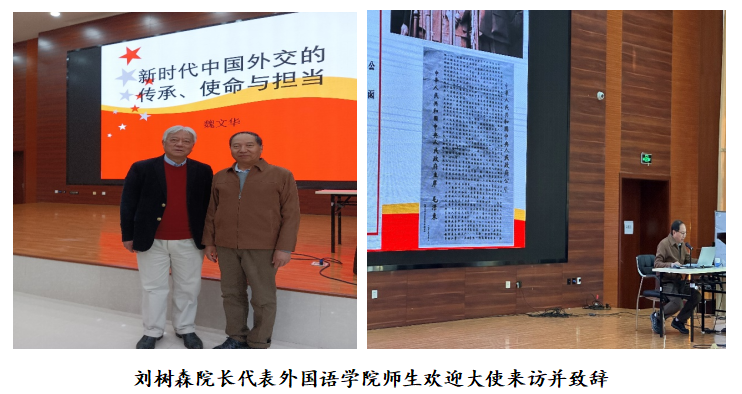 在学院一楼报告厅,刘树森院长代表外国语学院全体师生对魏文华大使的到来表示热烈欢迎,并对乐动网页版_乐动(中国)的悠久历史做了简单介绍。