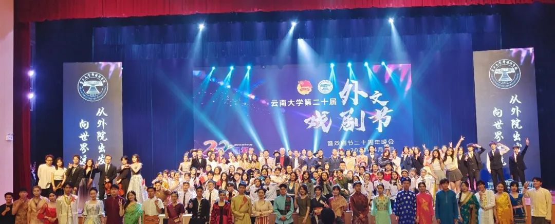 至此,云南大学第二十届外文戏剧节暨戏剧节二十周年晚会正式落下帷幕。外文戏剧节二十载,成就了一幕幕令人震撼的舞台画面,见证了每一位外院人不舍昼夜的不懈努力。未来可期,外院人仍将满怀热情,坚定信念,秉承“会泽百家、至公天下”的云大精神,怀抱梦想又脚踏实地,敢想敢为又善作善成,以骄人的成绩献礼百年华诞,以昂扬的姿态再启新程!再次感谢每一位闪耀夺目的表演者和默默奉献的幕后工作者们,期待外文戏剧节与您的下次相遇。
