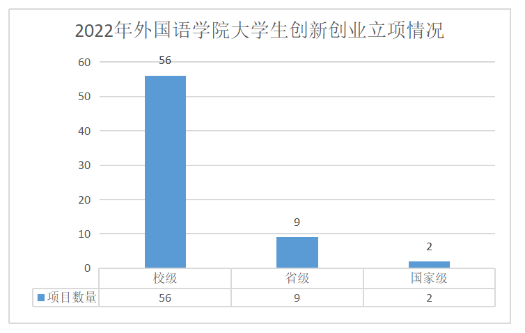 外国语学院十分注重本科生的创新创业工作,仅2022年乐动网页版_乐动(中国)就有67个项目获大创立项,其中国家级立项2项,省级立项9项。
