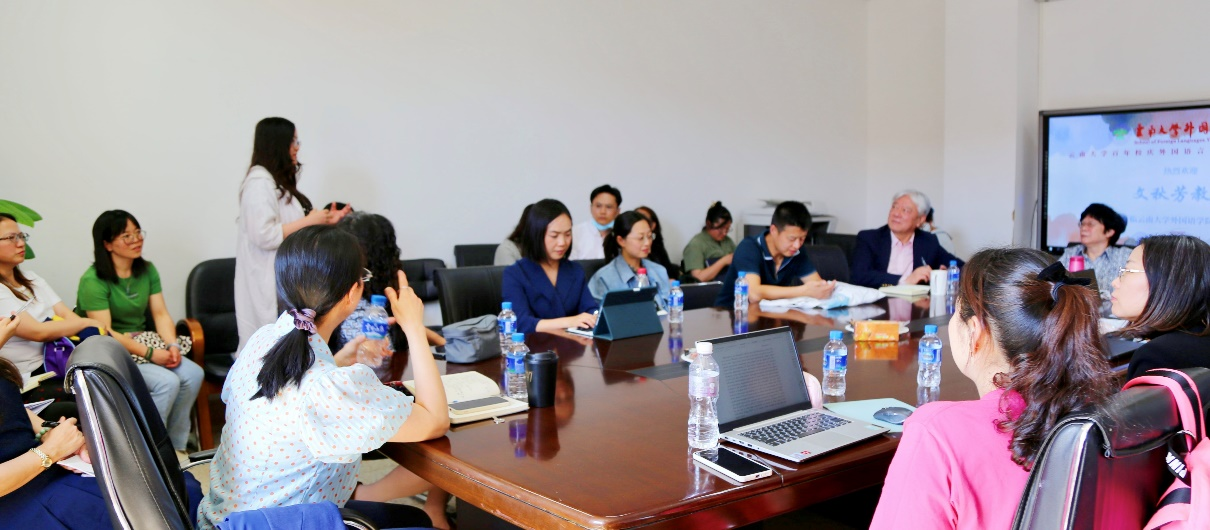 4月26日下午,以“新时代英语教学改革现状与发展趋势:基于《新标准大学英语》的探讨”为主题的座谈会,在乐动网页版_乐动(中国)303会议室举办。本次活动是云南大学百年校庆外国语言文学文化系列活动之一,由大外教学一部和二部主办,大外一部主任张梅教授主持。著名语言学家、北京外国语大学教授、博士生导师文秋芳受邀出席座谈会。文秋芳教授是北京外国语大学许国璋语言高等研究院院长,国家教材委员会外语学科专家委员会主任,中国英汉语比较研究会副会长,亚洲英语教学研究会副会长。