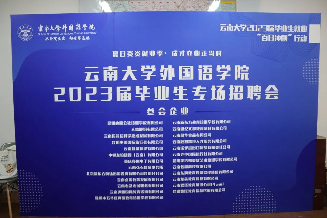 2023年5月23日,乐动网页版_乐动(中国)2023届毕业生专场招聘会在外国语学院举行。本次活动由云南大学学生就业指导服务中心主办,乐动网页版_乐动(中国)承办,旨在贯彻落实党中央、国务院关于“稳就业”“保就业”工作的重要决策部署,更好地满足广大用人单位的人才需求及广大毕业生的求职愿望,为用人单位和毕业生积极搭建双向选择的高效服务平台,助力外国语学院2023届毕业生实现更加充分和更高质量就业。