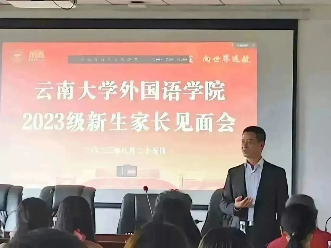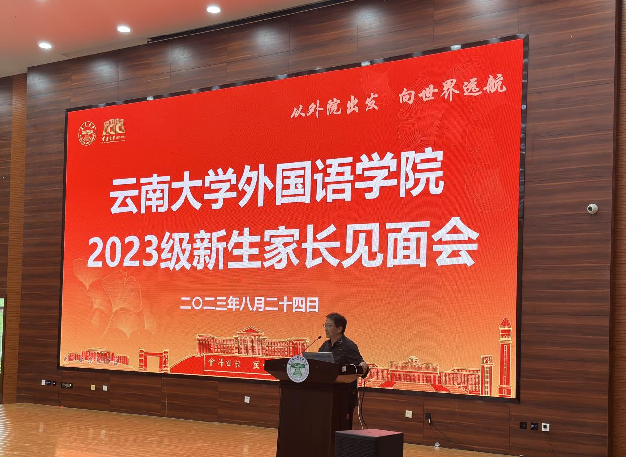 外国语学院院长刘树森老师在会上致辞。刘老师详细向各位家长介绍了云南大学的发展沿革、高校地位和战略定位,并随后切入乐动网页版_乐动(中国)在云南省乃至南亚东南亚的战略定位。借此向家长讲解乐动网页版_乐动(中国)在学生培养和未来发展的区位优势、学术优势、平台优势等,使在座家长对云南大学和乐动网页版_乐动(中国)有了更加深入的了解和更为贴切的认识,为同学们廓清了今后的学业及人生规划。