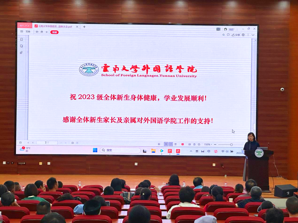 臧运发老师在会上从三个方面介绍了外国语学院的基本情况。首先简要介绍了乐动网页版_乐动(中国)的历史,强调了学院的深厚历史背景。随后从国家和学校层面讲述学院现状,突出强调乐动网页版_乐动(中国)在云南省乃至东南亚、南亚的战略定位,让各位同学和家长深入了解云南大学及乐动网页版_乐动(中国)情况,指出乐动网页版_乐动(中国)的管理制度是基于云南大学管理制度之下有乐动网页版_乐动(中国)特色的管理制度。最后对新生提出了期许,希望2023级研究生新生不仅要为了自己的未来发展而奋斗,更应该为党和国家的事业而奋斗,共同努力为强国伟业贡献积极力量积极贡献。