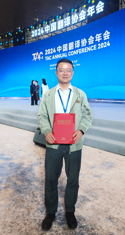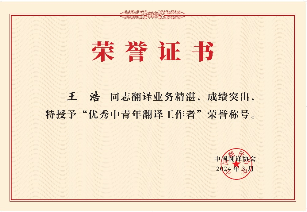 乐动网页版_乐动(中国)副院长、大学外语第二教研部教师王浩副教授在2024年中国翻译协会年会上被授予“优秀中青年翻译工作者”称号。