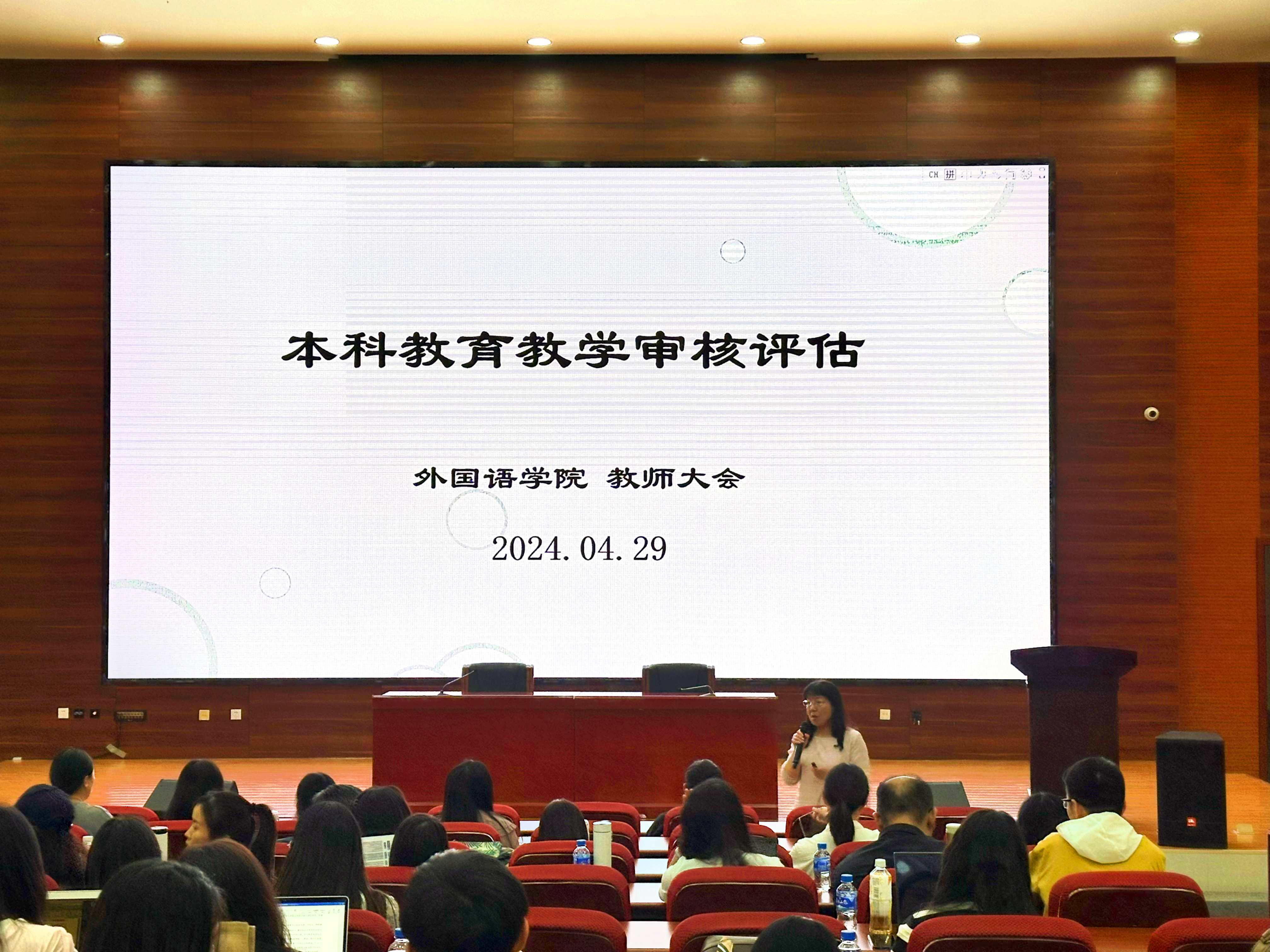 在前期工作的基础上,为进一步贯彻审核评估工作精神,凝心聚力,推进学院审核评估准备工作的深入落实, 乐动网页版_乐动(中国)于2024年4月29日17时在学院报告厅召开了本科教育教学审核评估专题教职工大会。会议由学院分管本科工作的谢萍副院长主持,学院党政领导和全体专业教师参会。
