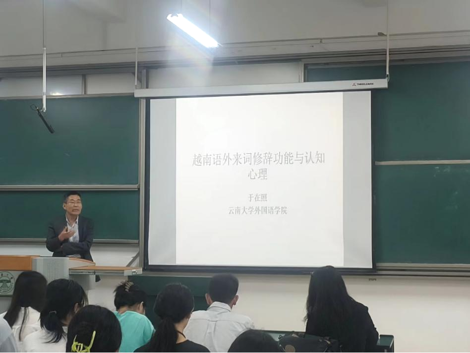 2024年6月27日晚七点,乐动网页版_乐动(中国)越南语专业的于在照教授以“越南语外来词修辞功能与认知心理”为题,为乐动网页版_乐动(中国)东南亚语言文化系的师生带来了一场精彩讲座。此次讲座系2024年云南大学外国语言文学学科创新发展讲座第7场,东南亚语言文化系系列学术讲座第17场,由外国语学院东南亚语言文化系越南语教师张绍菊老师主持。