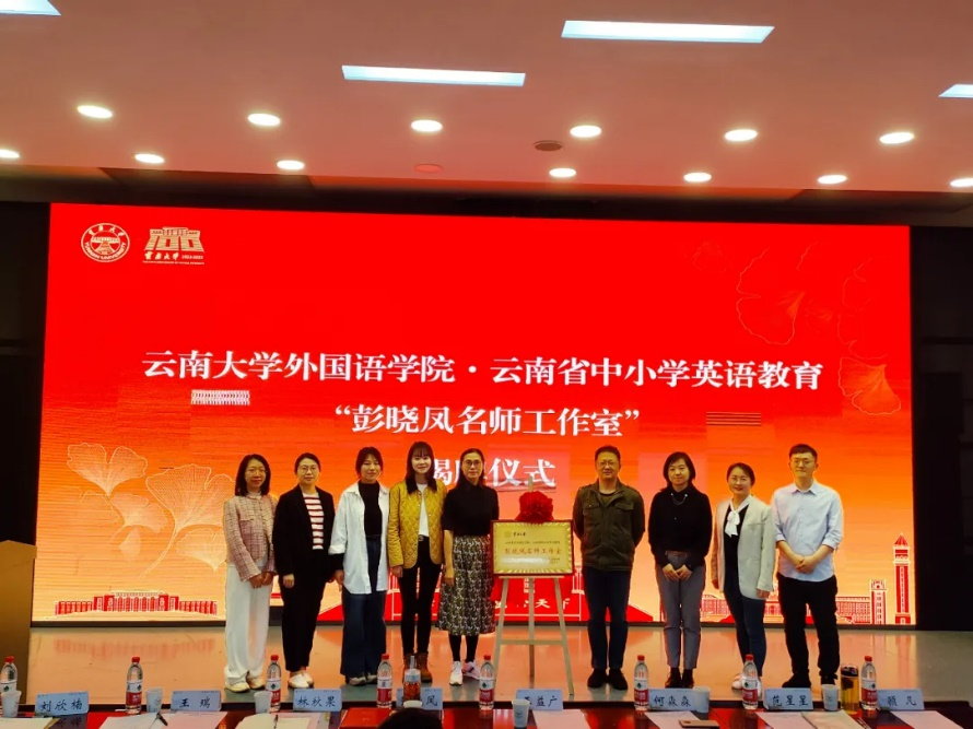 2023年3月24日下午,乐动网页版_乐动(中国)·云南省中小学英语教育“彭晓凤名师工作室”(以下简称“彭晓凤名师工作室”)揭牌仪式在云南大学呈贡校区学生会堂134顺利举行。参加本次揭牌仪式的嘉宾有云南省特级教师、首届正高级教师、全国基础教育教学专家、国家教材专委会教材审核专家、全国普通高等学校师范类专业认证专家彭晓凤老师,乐动网页版_乐动(中国)党委书记王益广老师,乐动网页版_乐动(中国)党委副书记何淼淼老师,云南师范大学附属中学呈贡校区初中部教师林秋果老师,云南师范大学附属俊发城中学初中部教师王瑞老师,昆明市第三中学高中部教师刘欣楠老师,云南师范大学附属中学呈贡校区高中部老师范星星老师,乐动网页版_乐动(中国)团委书记顾凡老师以及外国语学院的部分学生代表。揭牌仪式由外国语学院学工办副主任龙莹老师主持。