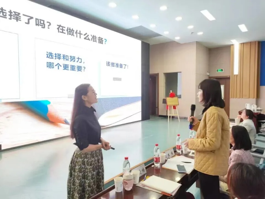 紧接着,彭老师带领大家从观念、方向、战略等方面分享了她对“选择与努力哪个更重要”的见解。通过个人经历的实例分享,彭老师向同学们介绍了作为一名中小学英语教师,需要做好哪些准备。同时,与会嘉宾分享了自己过去的教学故事,让大家明白了看课、悟课、听课、学课的重要性。