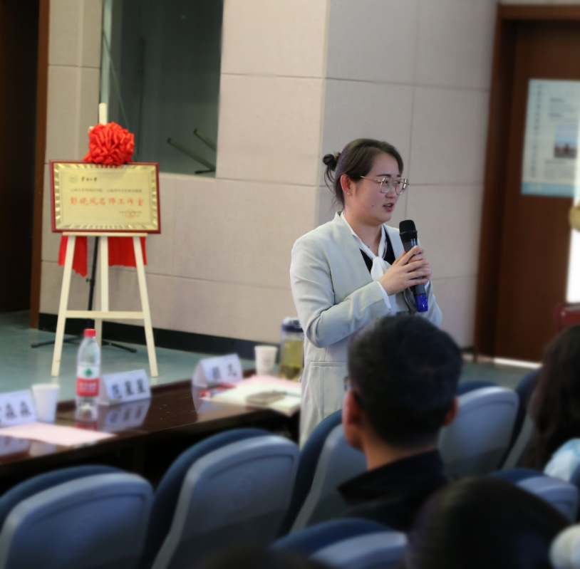接下来,外国语学院党委副书记何淼淼老师为名师工作室主持人彭晓凤老师颁发聘书。