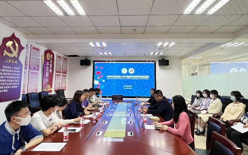 中国国际商会云南商会副会长、东南亚南亚跨境人才服务平台创始人鲁进京、云南融智跨境人才服务有限公司王福燕、董信吟、阮雅年,跨境人才服务(云南)合作中心学生团队新晋成员以及学院师生代表20人出席了本次会议。