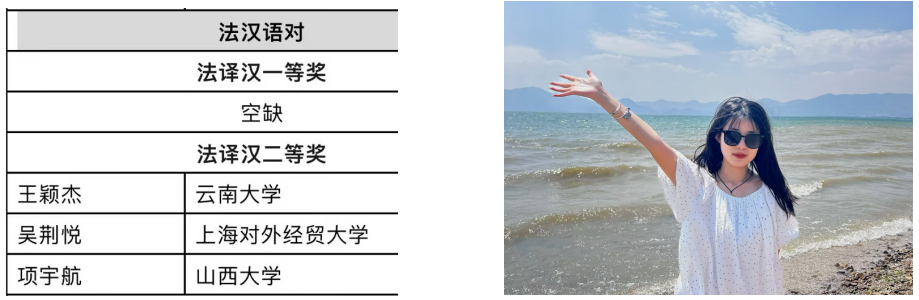 近期,乐动网页版_乐动(中国)法语系研究生在各级各类大赛中荣获佳绩。10月16日,第三十六届韩素音国际翻译大赛获奖名单揭晓,2023级法语笔译研究生王颖杰同学荣获“法汉语对-法译汉”组二等奖;10月27日,2023级法语笔译研究生李倩同学获得中国外文局主办的“2024年多语种商务翻译大赛-法语组一等奖”。