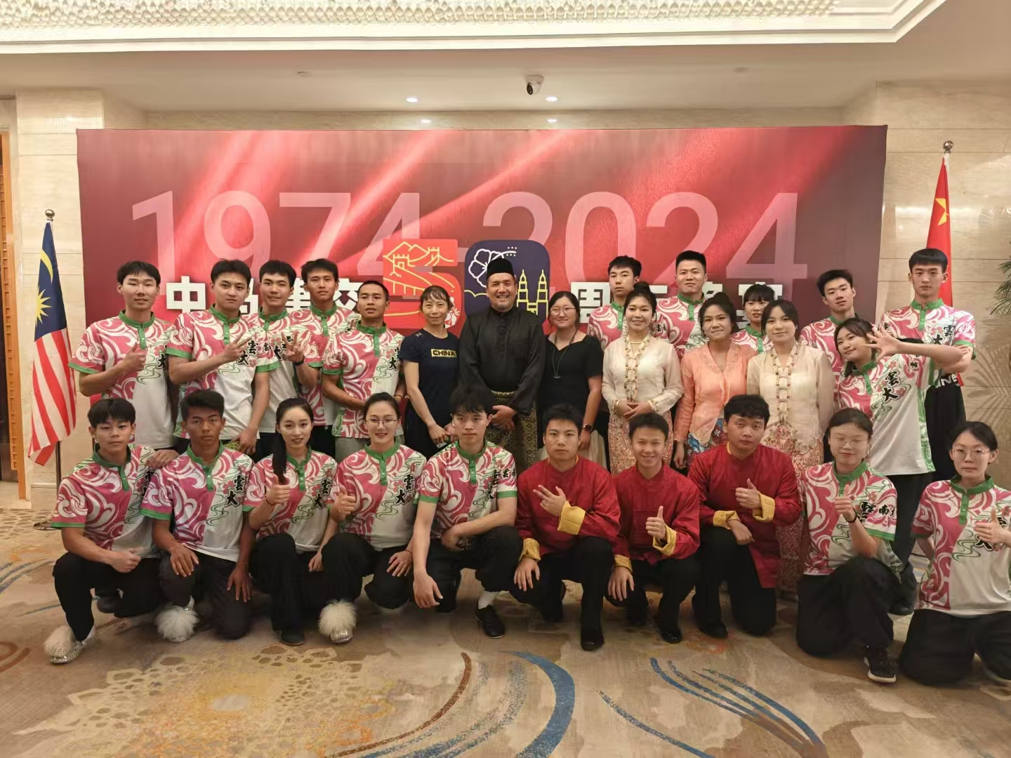 马来西亚驻昆总领事穆罕默德·阿克玛先生(中)在中马建交50周年庆祝活动上与乐动网页版_乐动(中国)马来语专业师生亲切合影